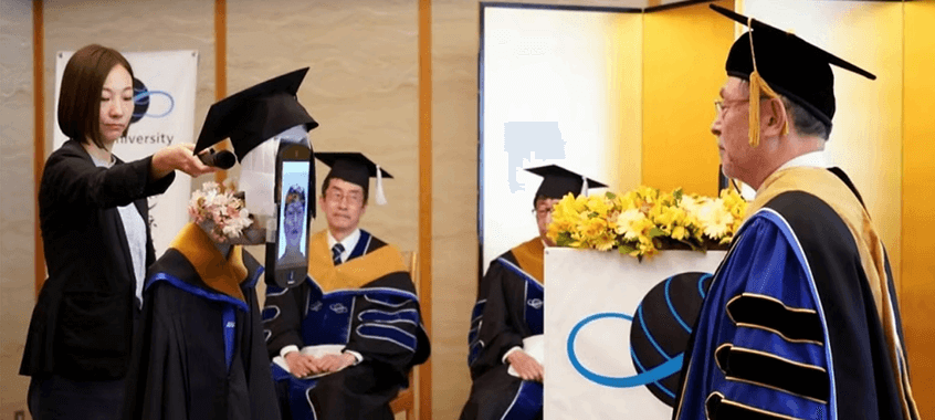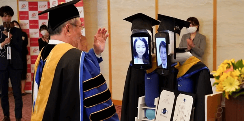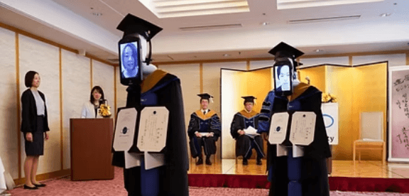 Una ceremonia de graduación, donde los Robots sustituyen a los estudiantes se ha celebrado en Japón, a través de Zoom. Los Robots, reciben los certificados de los estudiantes, porque estos no pueden estar a causa de la crisis sanitaria global.